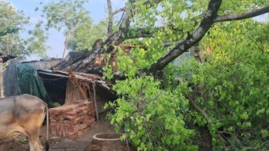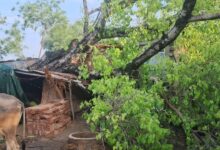 विशाल पीपल का पेड़ गिरने से घर धराशाई,बाल-बाल बचे लोग