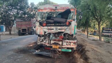 दो डंपरों में भीषण टक्कर,बड़ी मशक्कत बची चालक की जान