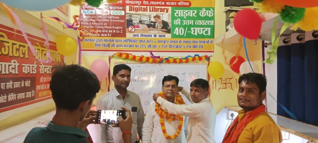 लालगंज (बलिया)। विजयदशमी के पावन अवसर पर लालगंज बाजार में आदर्श कम्प्यूटर एकेडमी एण्ड साइबर कैफे उद्घाटन का उद्घाटन STS के डायरेक्टर श्री शैलेस वर्मा ने फीता काटकर किया।उद्घाटन समारोह में बैदिक मंत्रोचार के साथ पूजन अर्चन पंडित प्रभाकर मिश्रा ने करायी इस दौरान क्षेत्र के अनेक गणमान्य व्यक्ति, सामाजिक कार्यकर्ता, छात्र-छात्राएँ एवं नगरवासी मौजूद रहे।