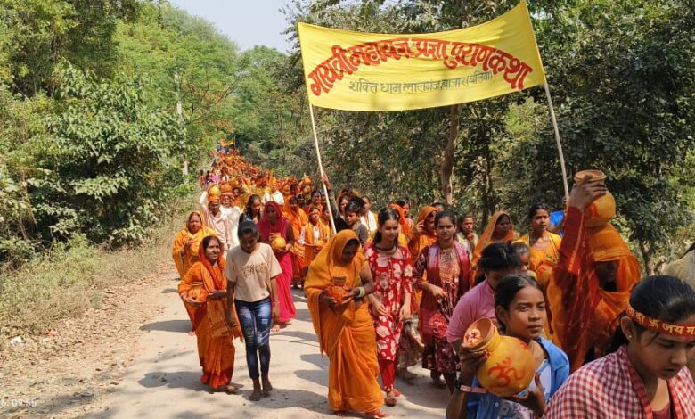 लालगंज (बलिया) । स्थानीय बाजार में शांतिकुंज हरिद्वार के तत्वावधान में आयोजित 9 कुण्डीय गायत्री महायज्ञ एवं पावन प्रज्ञा पुराण कथा के शुभारंभ पर शुक्रवार को भव्य कलश यात्रा निकाली गई।