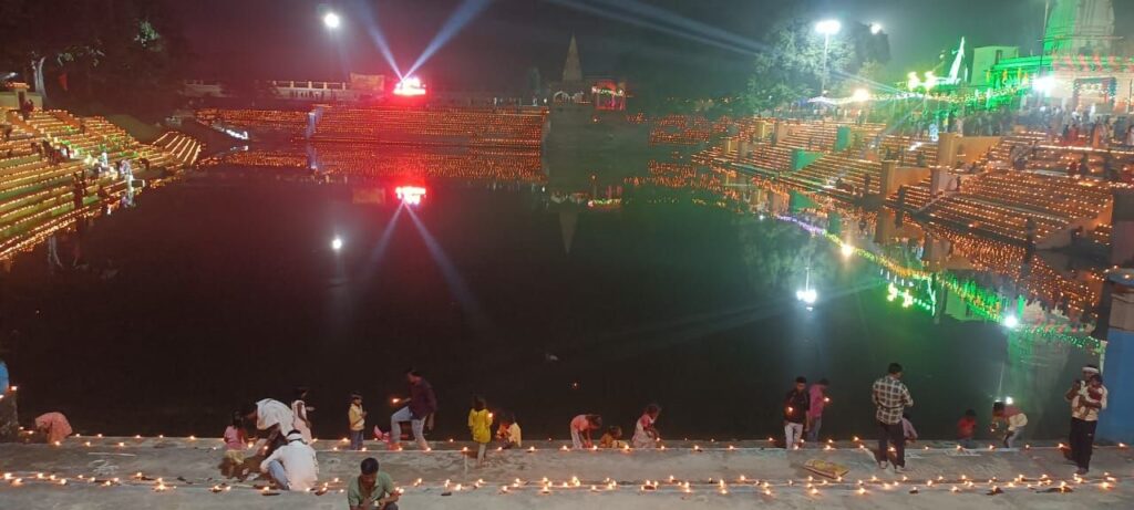 इस दौरान सरोवर घाटों पर 51 हजार दीप मालाओं को प्रज्जवलित करने के बाद गंगा आरती की गई। भव्य आरती के साथ ही रामदरबार व राम-लक्ष्मण, जानकी एवं राधा-कृष्ण की भव्य झांकी आकर्षण का केंद्र बना रहा।इसके बाद यहां का दृश्य मानों ऐसा लगने लगा कि जैसे जमीं पर सितारे एक साथ उतर आए हों।इस विहंगम दृश्य को देखने के बड़ी संख्या में श्रद्धालुओं की भीड़ उमड़ पड़ी।इस दौरान रामलीला कमेटी के संरक्षक व श्रीनाथ मठ के महंत महामंडलेश्वर कौशलेंद्र गिरि, नपा के पूर्व चेयरमैन वशिष्ठ नारायण सोनी, रामजी स्टेट, संतोष जायसवाल, निर्मल कुमार पांडेय, अविनाश सोनी, शमशेर बहादुर सिंह सेंगर, सत्या सिंह, संतोष आर्य, ब्रजेश त्रिपाठी गुड्डू, अनिल सोनी, लाला आदि रहे।