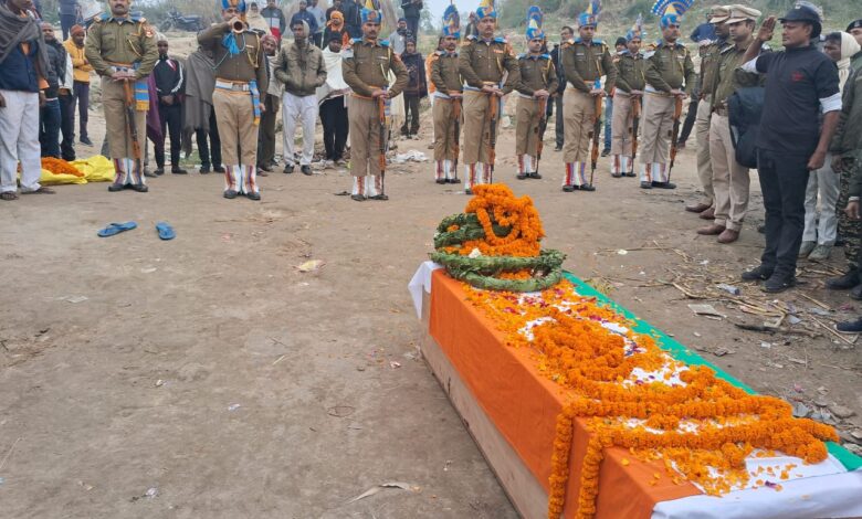 दयाछपरा(बलिया)।बैरिया थाना क्षेत्र के प्रसाद छपरा निवासी सीआरपीएफ के कमांडेंट उमेश तिवारी (59) का निधन सोमवार की रात्रि 8:00 बजे श्रीनगर 92 बटालियन के उनके आवास पर हृदय गति रुक जाने से आकस्मिक मौत हो गई। जिसकी सूचना मंगलवार के दिन ही बटालियन के द्वारा उनके पैतृक आवास प्रसाद छपरा में भेज दिया गया तभी से पड़ोसियों में एक चर्चा का विषय बना हुआ था कि बुधवार को भोर के 5:00 बजे उनका पार्थिव शरीर असिस्टेंट कमांडेंट पवन कुमार जीसी लखनऊ की देखरेख में 10 जवानों द्वारा लेकर उनके पैतृक आवास प्रसाद छपरा में लाया गया जहां सीआरपीएफ के जवानों ने गार्ड ऑफ ऑनर के तौर पर पुष्प चक्र अर्पित कर अपने जवान की अंतिम विदाई दी ।उसके बाद ग्राम वासियों ने हुकुम छपरा गंगा घाट पर ले गए।वहां मुखाग्नि उनके बड़े पुत्र शुभम तिवारी ने दी। इस घटना से प्रसाद छपरा में मातम की लहर छा गई । स्वर्गीय तिवारी की पत्नी उर्मिला देवी 55 वर्ष का रोते रोते बुरा हाल हो गया था। अपने पति के शरीर से लिपटकर दहाड़े मारकर गिर जा रही थी ।जिसे संभालने में पड़ोस की औरतें भी बदहवास होकर आंसू बहा रही थी ।इस मौके पर समाजसेवी विजय कुमार तिवारी, अंगद मिश्रा, ओंकार तिवारी ,अनिल पाण्डेय,मुन्ना पाण्डेय,अमित तिवारी सहित सैकड़ो समाज सेवी अपने लाल को पुष्प चक्र अर्पित कर अंतिम विदाई दी।