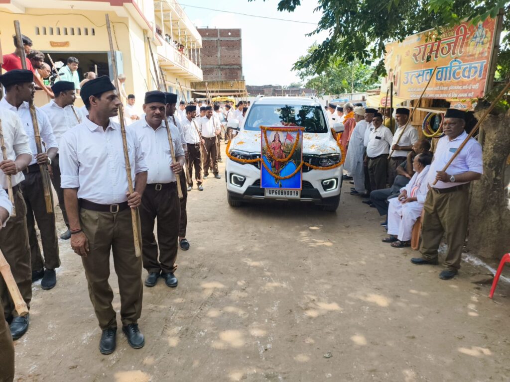 कार्यक्रम का शुभारंभ रामजी उत्सव वाटिका, लालगंज बाजार से हुआ, जहां संघ के पूर्वी उत्तर प्रदेश के बौद्धिक प्रमुख मिथिलेश जी ने पथ संचलन को हरी झंडी दिखाकर रवाना किया।