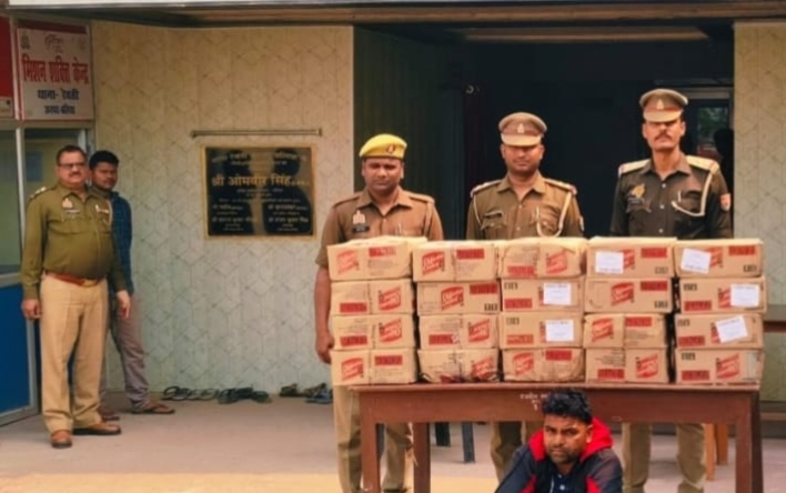 रेवती में अवैध अंग्रेजी शराब के साथ तस्कर गिरफ्तार,175 लीटर शराब बरामद