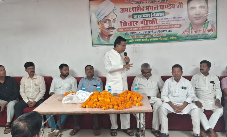 दुबहड़,(बलिया )। 1857 की क्रांति के महान योद्धा शहीद मंगल पांडेय के 169वें बलिदान दिवस के अवसर पर उनके पैतृक गांव नगवां स्थित स्मारक पर एक भव्य संगोष्ठी का आयोजन किया गया। “1857 की क्रांति और वर्तमान परिवेश में इतिहासकारों की भूमिका” विषय पर आयोजित इस चर्चा में वक्ताओं ने शहीद मंगल पांडेय के ऐतिहासिक योगदान और इतिहासकारों द्वारा उनके प्रति किए गए न्याय पर गंभीर विचार व्यक्त किए।
