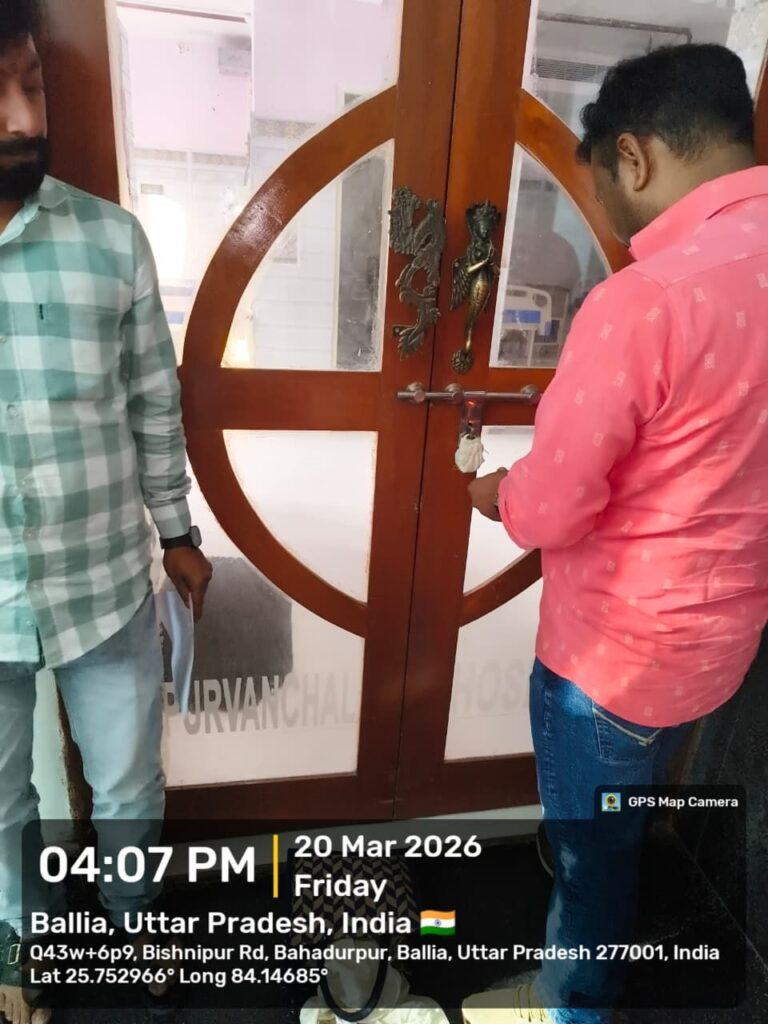 बलिया । जिले में स्वास्थ्य विभाग ने बड़ी कार्रवाई करते हुए ए-वन पूर्वांचल हॉस्पिटल और वरदान हॉस्पिटल को सील कर दिया है। वहीं दुर्गा हॉस्पिटल और स्वस्तिक हॉस्पिटल को आवश्यक कागजात प्रस्तुत करने के लिए नोटिस जारी किया गया है।