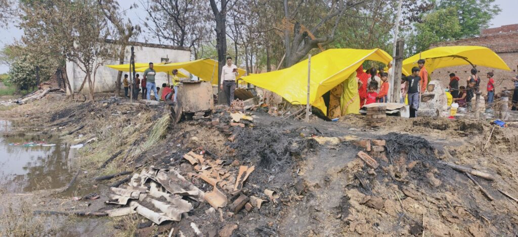 ब्लास्ट इतना तेज था कि आसपास की जमीन थर्रा गई। आग आसपास के झोपड़ी और फसलों में जाकर फैलने लगी। देखते ही देखते रामायण गोंड पुत्र भोलानाथ गोंड, वीरेंद्र गोंड पुत्र रामायण गोंड, भरत गोंड पुत्र स्वर्गीय भोलानाथ गोंड, संतोष गोंड पुत्र स्वर्गीय भोलानाथ गोंड, वकील पासवान पुत्र स्वर्गीय जोगिंदर पासवान, पुष्पा देवी पत्नी स्वर्गीय अवधेश पासवान और दंगल पासवान पुत्र वकील पासवान की झोपड़ी आग की लपटों की चपेट में आ गई। झोपड़ी में सो रही जोगिंदर गोंड की 13 वर्षीय पुत्री अंबिका आग में झुलस गई।उसे ग्रामीणों की सहयोग से जिला चिकित्सालय ले जाया गया जहां उपचार चल रहा है स्थिति सामान्य है। जोगिंदर गोंड के घर से जले हुए गहने और नगदी देखा गया तो बताया कि मैं अपनी बच्ची की शादी के लिए डेढ़ लाख रुपए से अधिक रुपए के गहने धीरे-धीरे बनवा कर रख रहा था जिससे की विवाह के समय कोई दिक्कत ना हो। वहीं वकील पासवान की झोपड़ी में बंधी बकरी जल कर मर गई। उन सभी पीड़ित परिवार जनों ने बताया कि घर में रखा गया सारा सामान, कपड़े, गहने, नगदी, बर्तन,चारपाई सहित जमीन रजिस्ट्री की मुल कापी जलकर खाक हो गई है। ग्रामीणों ने समरसेबल से पानी की व्यवस्था कर आग पर काबू पाया तब तक दमकल की गाड़ी पहुंच गई। घंटों मशक्कत के बाद दमकल कर्मियों ने आग को बुझाने में सफल रहे। तब तक सब कुछ जलकर नष्ट हो चुका था। शिवपुर दियर पुलिस चौकी प्रभारी शिवचंद यादव मौके पर पहुंच कर पीड़ित लोगों की मदद करने और आग को नियंत्रित करने की व्यवस्था में लग रहे। वहीं ग्राम प्रधान संजय यादव, लेखपाल अवनीश पांडे, समाजसेवी कल्याण सिंह मौके पर पहुंचकर लोगों में तिरपाल सहित अन्य उपयोगी वस्तुओं की व्यवस्था की। आग से रियायशी झोपड़ियों के जल जाने से परिवार के छोटे-छोटे बच्चे और औरतों को खुले में रहने के लिए मजबूर होना पड़ रहा है स्थिति यह है कि भोजन के लाले पड़ गए हैं। इस स्थिति में गांव के लोग और रिश्तेदार सहित समाजसेवी लोग मदद करने के लिए आगे आते नजर आ रहे हैं।
