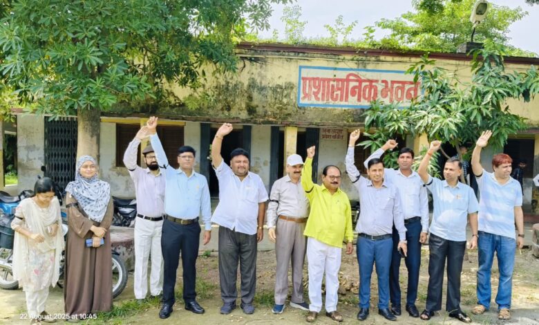 रसड़ा (बलिया)। मथुरा पीजी कॉलेज रसड़ा के शिक्षकों द्वारा अखिल भारतीय विश्वविद्यालय महाविद्यालय शिक्षक महासंघ के आह्वान पर शुक्रवार को पुरानी पेंशन सहित अन्य मांगों के समर्थन में अपनी बाहों में काली पट्टी बांधकर कालेज परिसर में प्रदर्शन किया गया।इस मौके पर प्राचार्य डॉ. धनंजय सिंह, प्रोफेसर डॉ. बब्बन राम, डॉ. सुनील कुमार दुबे, डॉ. सुरेश मिश्र, डॉ. आलिया खातून, डॉ. मनोज पांडे, स्वाति सिंह, डॉ. शरद पवार, डॉ. सुनील कुमार सैनी, डॉ. सुरेश कुमार यादव आदि रहे।