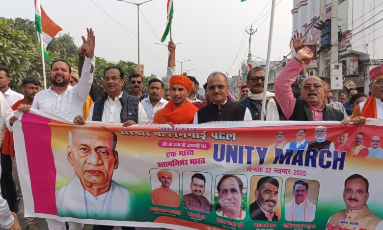 रसड़ा(बलिया)। लौह पुरुष सरदार वल्लभभाई पटेल की 150वीं जयंती के अवसर पर शनिवार को 358 विधानसभा स्तरीय महामंडलेश्वर कौशलेंद्र गिरि के नेतृत्व में विशाल पदयात्रा निकाली गई। यह पदयात्रा रसड़ा के रामलीला मैदान से निकाली गई जो नगर के विभिन्न मार्गो पर भ्रमण करते हुए श्रीनाथ मठ परिसर में पहुंच कर समाप्त हुई।नगर में जगह-जगह लोगों द्वारा पुष्पवर्षा कर स्वागत किया गया। इस दौरान महामंडलेश्वर कौशलेंद्र गिरि ने कहा कि सरदार पटेल का योगदान आज भी भारत की एकता और अखंडता के लिए प्रेरणा स्रोत है। पदयात्रा में शामिल भाजपा कार्यकर्ताओं और एनसीसी कैडेटों ने भारत माता की जय, सरदार पटेल अमर रहें, वंदेमातरम आदि के नारे लगाते चल रहे थे। इस पदयात्रा में भाजपा नेता पूर्व चेयरमैन वशिष्ठ नारायण सोनी, अविनाश सोनी, निर्मल पांडेय, इकबाल अंसारी, सर्वजीत सिंह, इंद्रजीत सिंह, संदीप सोनी, ठाकुर मंगल सिंह सहित सैकड़ों की संख्या में पार्टी कार्यकर्ता शामिल रहे।