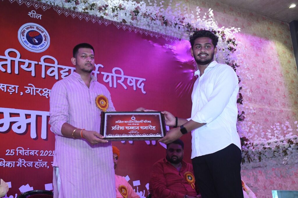 कार्यक्रम में आए सभी अतिथियों का स्वागत किया गया।सम्मान समारोह में हाईस्कूल, इंटरमीडिएट, स्नातक परास्नातक में उत्कृष्ट प्रदर्शन करने वाले 950 प्रतिभाशाली विद्यार्थियों को सम्मानित तथा विद्यार्थियों की मेहनत, समर्पण एवं प्रतिभा को प्रोत्साहित किया गया।मुख्य अतिथि महामंडलेश्वर कौशलेंद्र गिरी ने कहा कि आप सभी विद्यार्थी सौभाग्यशाली हैं की विश्व के सबसे बड़े राष्ट्रवादी छात्र संगठन विद्यार्थी परिषद द्वारा सम्मानित किया गया। इस तरह के आयोजनों से विद्यार्थियों को प्रेरणा मिलती है और वे भविष्य में और अधिक निष्ठा एवं उत्साह के साथ कार्य करने के लिए प्रोत्साहित होते हैं। इस प्रकार के कार्यक्रम आयोजित कर अभाविप ने यह पुनः सिद्ध किया कि वह केवल शैक्षणिक गतिविधियों तक सीमित नहीं है, बल्कि राष्ट्र और समाज निर्माण की दिशा में भी अपनी महत्वपूर्ण भूमिका निभा रहा है।विशिष्ट अतिथि के रूप में उपस्थित पूर्व विधायक सिकंदरपुर संजय यादव ने कहा कि अभाविप का उद्देश्य विद्यार्थियों को नेतृत्व, राष्ट्रप्रेम, सामाजिक समरसता और सेवा के मार्ग पर आगे बढ़ाना है। संगठन शिक्षा, पर्यावरण, स्वास्थ्य, महिला सशक्तिकरण, ग्रामीण विकास जैसे अनेक क्षेत्रों में समय-समय पर जनहित में अभियान चलाकर समाज को जागरूक करता रहा है।दिल्ली विवि एवीबीपी के सह संयोजक व फुलेहरा ग्रुप ऑफ इंस्टीट्यूट के प्रबंध निदेशक ऋषिराज सिंह ने कहा कि मैं खुद को भाग्यशाली मानता हूं कि स्वयं दिल्ली विश्वविद्यालय में विद्यार्थी परिषद का कार्यकर्ता रहा। भारत को नेताजी सुभाष चंद्र बोस एवं विवेकानंद जी के सपनों का भारत बनाने हेतु आज युवाओं की अहम भूमिका होनी है, जिसका सशक्त मध्यम एवीबीपी ही हो सकती है।इस अवसर पर जिला संगठन मंत्री ऋषभ सिंह, चमन प्रताप सिंह, गजेंद्र उबारन गिरी, राजीव शर्मा, इमाद अहमद, हनजला, चंद्रकांत दुबे पूजा पाल सुमित शर्मा, ऋषभ तिवारी, पार्वती चौहान आदि उपस्थित रहे। संचालन प्रांत कार्यसमिति सदस्य शानू शर्मा ने किया। जिला प्रमुख भैया घनश्याम शरण सिंह ने आभार व्यक्त किया।