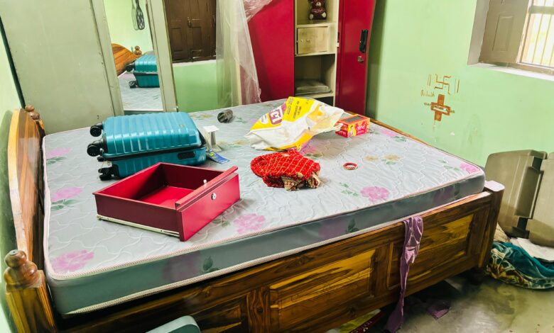 बांसडीह(बलिया) । क्षेत्र के हालपुर गांव में बंगला पर स्थित गुड्डू सिंह के घर में रविवार की रात ग्रिल काटकर घुसे चोरों ने चार कमरों में आलमारी,बक्शा तोड़कर दो लाख रूपया नगद तथा लगभग पांच लाख रूपया का गहना,कपड़ा,बर्तन और अन्य सामान चुरा लिया हैं । मौके पर पहुंची पुलिस मामले की जांच कर रही है। बलिया से मौके पर पहुंची फोरेंसिक टीम ने घटना की जांच किया तथा फिंगर प्रिंट का नमूना एकत्र किया । शराब कारोबारी गुड्डू सिंह बाहर रहते हैं। हालपुर गांव में बड़ा मकान हैं। घर पर तीन वृद्व महिलाएं ही रहती हैं। देर रात पीछे से ग्रिल काटकर घुसे चोरों ने कमरों का ताला तथा आलमारी आदि तोड़ दिया। चोरों ने घर में रखा बक्सा, चार अलमारी तोड़कर सभी सामान चुरा ले गए । चोरों ने सोना का दो चेन, दो अंगुठी, दो झुमका, एक चुडी व चांदी का चार पायल, चार सूटकेस कपड़ा ,बर्तन, चुरा ले गये हैं। चोरों ने लगभग दो लाख रूपया नगद भी चुरा ले गये हैं। एक ही कमरे में सो रही घर की कमला सिंह, कामिनी सिंह व सुनैना देवी की तड़के सुबह नींद खुलने पर आंगन में बिखरे सामान देखकर चोरी की जानकारी हुई। हालपुर गांव निवासी कांग्रेस के प्रदेश उपाध्यक्ष राघवेन्द्र प्रताप सिंह ने पुलिस को सूचना दिया । मौके पर पहुंची पुलिस मामले की जांच कर रही है। राघवेन्द्र प्रताप सिंह ने चोरी के शीघ्र प्रर्दाफास की मांग किया। उन्होंने आरोप लगाया की क्षेत्र में लगातार चोरी की घटनाएं हो रही है लेकिन पुलिस निष्क्रिय बनी हुई है। इस दौरान गांव के प्रधान दयाशंकर राजभर, अरविंद वर्मा, संतोष सिंह पिंटू सिंह, आदि लोगों ने चोरी का शीघ्र प्रर्दाफास करने की मांग किया।