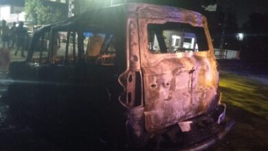 रसड़ा में रेलवे क्रासिंग के बीच में आग का गोला बनी स्कार्पियो