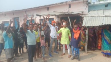 शराब की दुकान हटाने की मांग को लेकर महिलाओं समेत ग्रामीणों का लाठी-डंडे के साथ प्रदर्शन